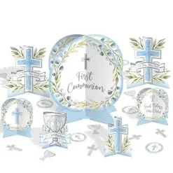 Blue My First Communion Cardstock Table Decorating Kit, 27pc