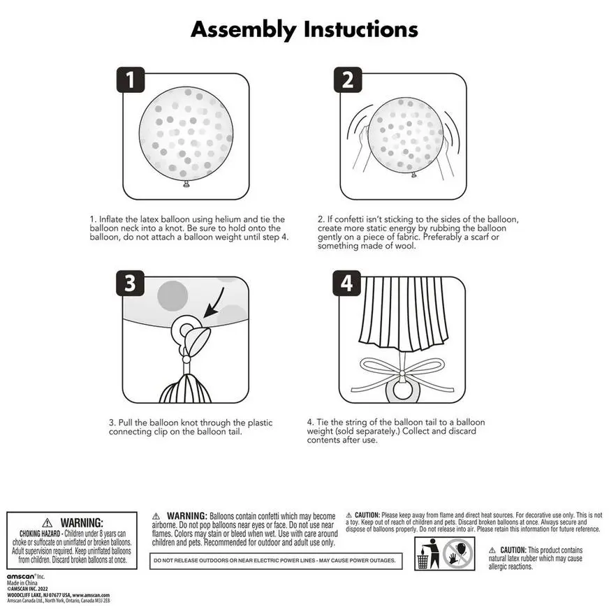 WARNING: CHOKING HAZARD – Children under 8 years can choke or suffocate on uninflated or broken balloons. Adult supervision required. Keep uninflated balloons from children. Discard broken balloons at once.