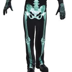 What’s that spooky glow in the Halloween night? It’s a glow-in-the-dark skeleton! This costume includes a black hooded jumpsuit with a glow-in-the-dark skeleton print, matching black gloves, and a glow-in-the-dark mask.