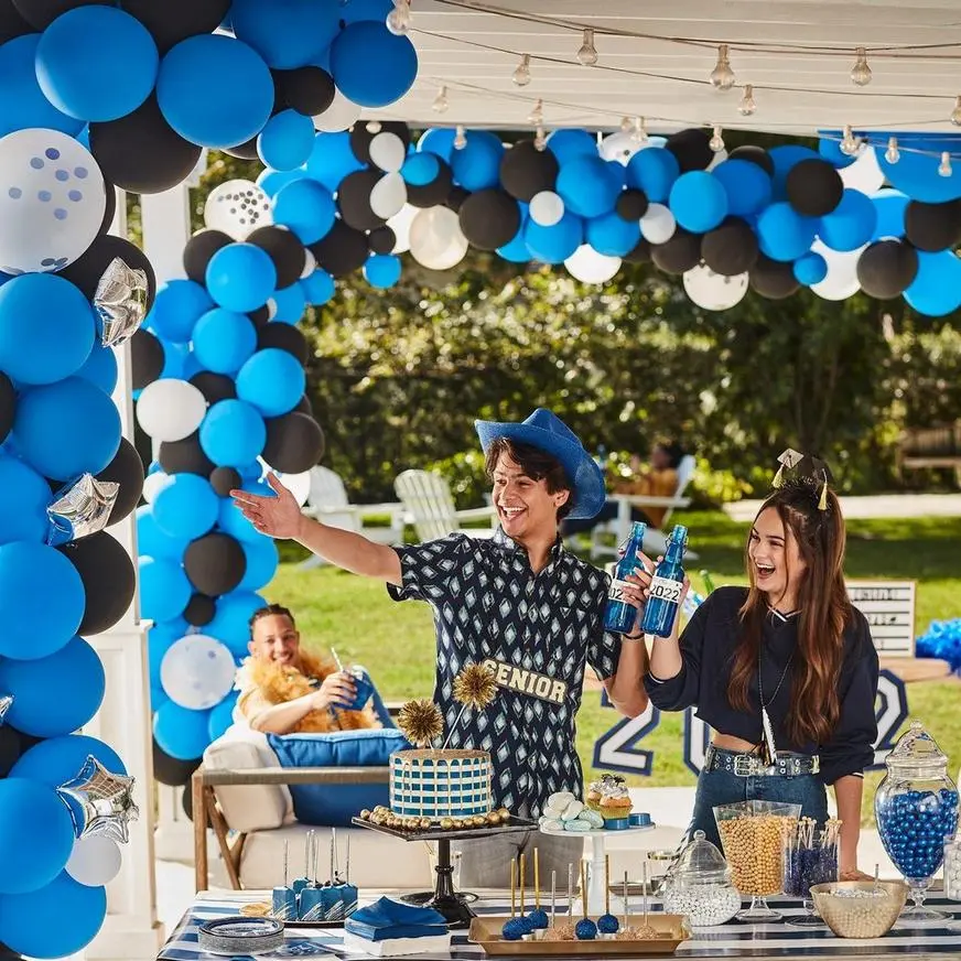 - 5 Black & Blue Latex Confetti Balloons, 12in