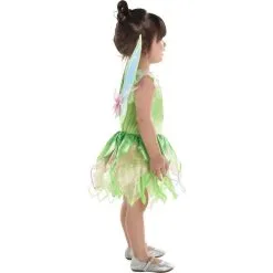 “This Classic Tinker Bell Costume makes it easy to dress your kiddo up as Peter Pan’s sassy sidekick. The green satin dress features airy mesh petal sleeves that match the layered satin and organza skirt. Finish the look with the included sparkling wings to give them their fairy magic!