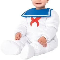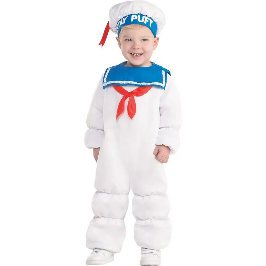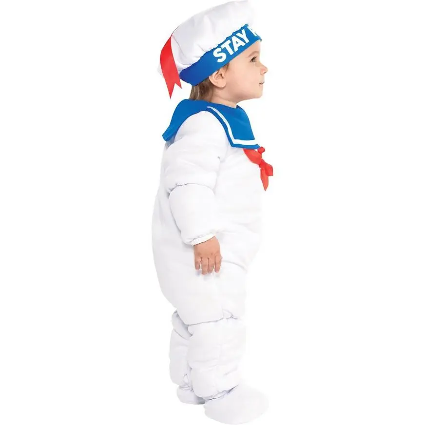 More on Ghostbusters Baby Stay Puft Marshmallow Man Costume: Who you gonna call? Your little one is anything but a monster in this adorable Padded Stay Puft Marshmallow Man Costume for babies. The white padded jumpsuit values along the legs and has an attached blue bib with a red bow. The included matching booties will keep your little one’s toes nice an toasty all night! Top this adorable baby Ghostbusters costume off with the white foam-backed hat that reads “Stay Puft” along the blue band. Review the size chart for additional information.