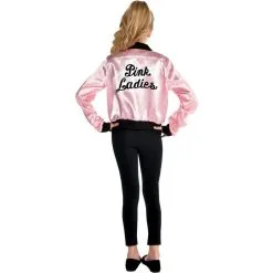 Your little one is ready to hit the Frosty Palace to meet the T-Birds in a Grease Pink Ladies Jacket for girls! The pink polyester jacket features a glitter black “Pink Ladies” logo on the front and the back. Pair this jacket with black pants and sunglasses to complete the look. Your child is ready to rule the school in this Pink Ladies Jacket! Review the size chart for additional sizing information. Shoes, shirt, and leggings not included.