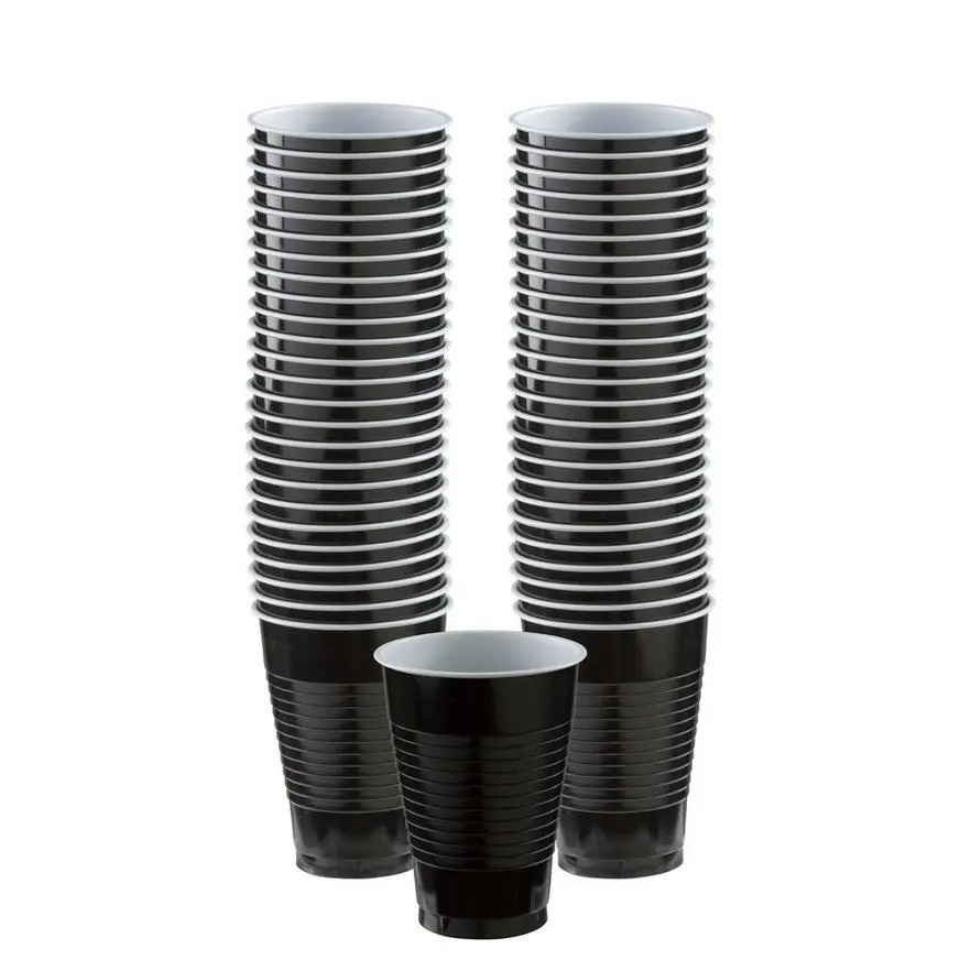 Add some style to your special occasion with Black Plastic Cups! These black 12oz plastic cups have a ribbed surface for a comfortable no-slip grip and a versatile color to suit any party theme.