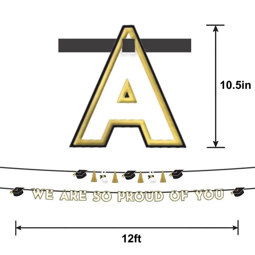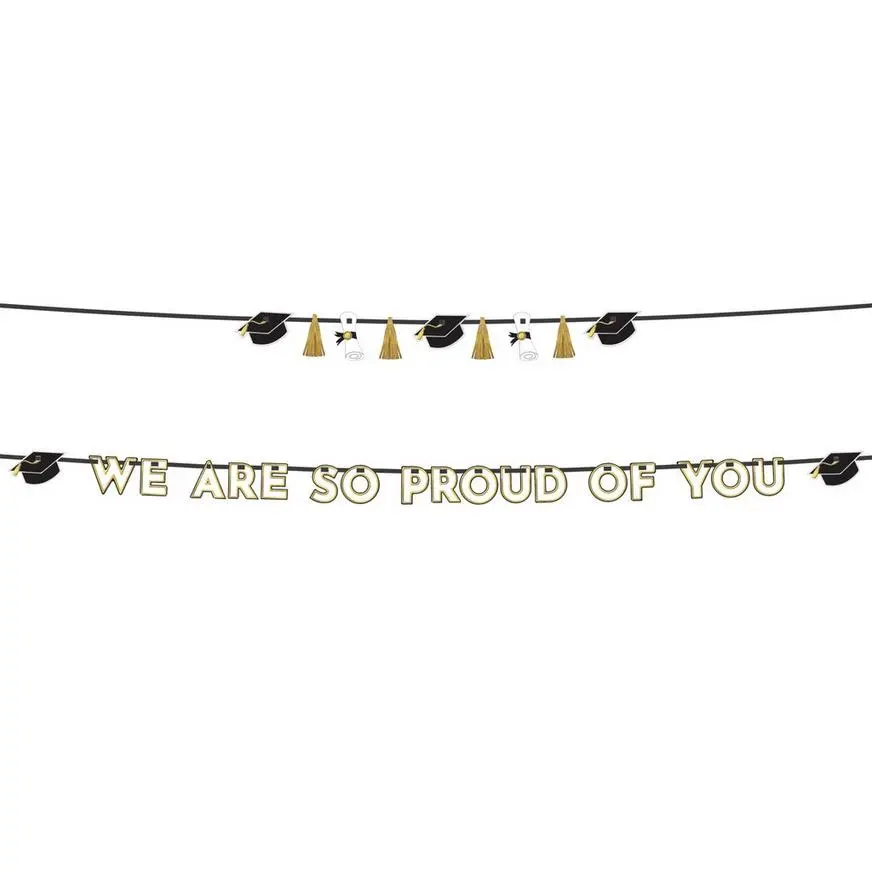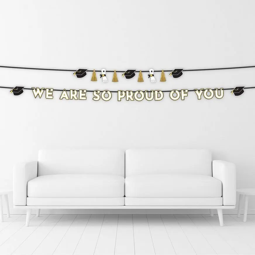 Black, White, & Gold Proud of You Graduation Banner Set product details:
