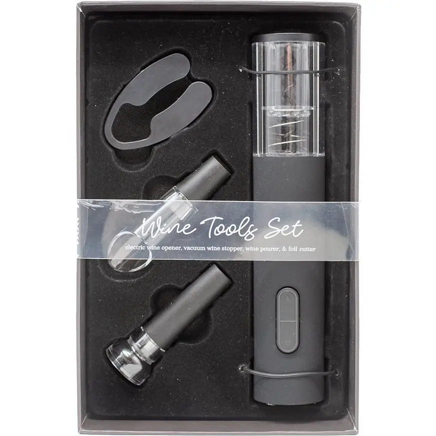 Get everything you need to handle your bottles of wine properly! This wine tools set includes an electric wine opener, a vacuum wine stopper, a wine pourer, and a foil cutter.