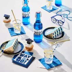Let your grad know how proud you are with these beverage napkins! The small two-ply paper napkins are blue, black, and white to match their school colors and read “Way to Go!” with a mortarboard.