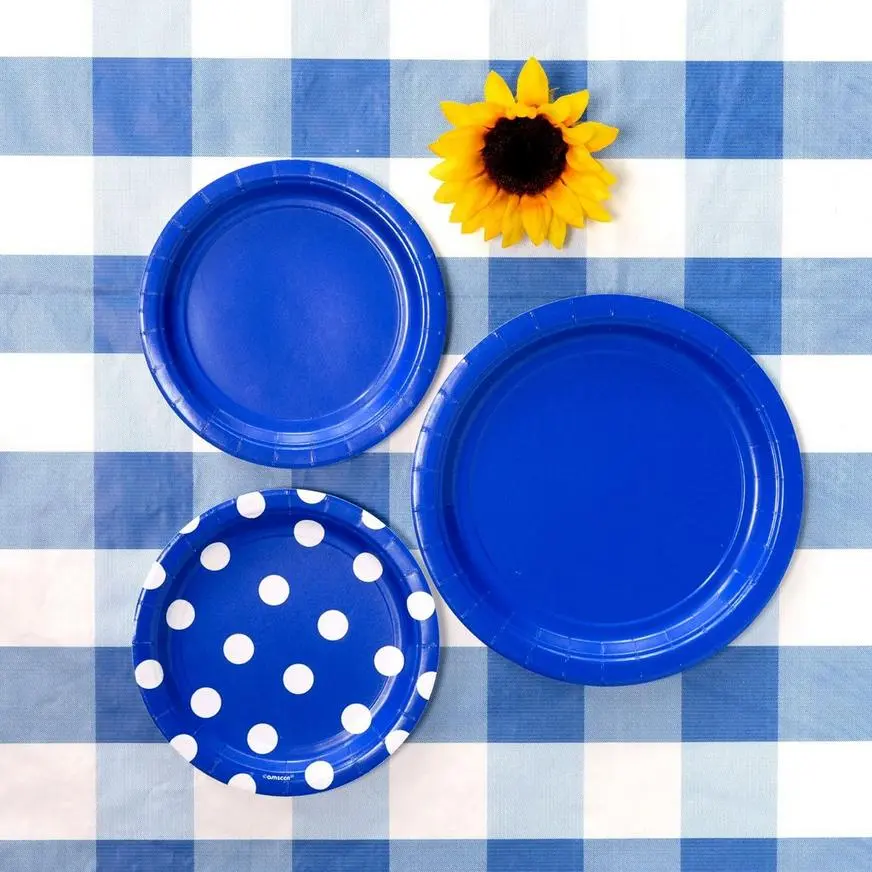 Set the table for your next party with a Blue & White Plaid Table Cover! This table cover is wipeable and tear resistant and made of heavy duty paper with plastic, laminated backing. The blue and white plaid design make it easy to mix and match this plaid table cover with other blue and white tableware. The 54 x 108 size can be cut down to fit smaller card tables, or you can use it as a backdrop.