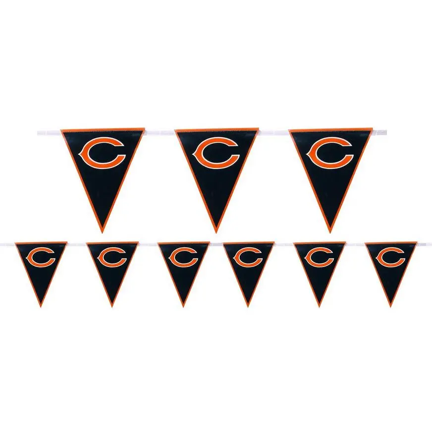 Get your party ready for some football! This Chicago Bears Pennant Banner features the logo and colors of your favorite football team printed on one side of each flag. With strings on each side for easy hanging, this officially licensed decoration is perfect for game day or a sports-themed party.