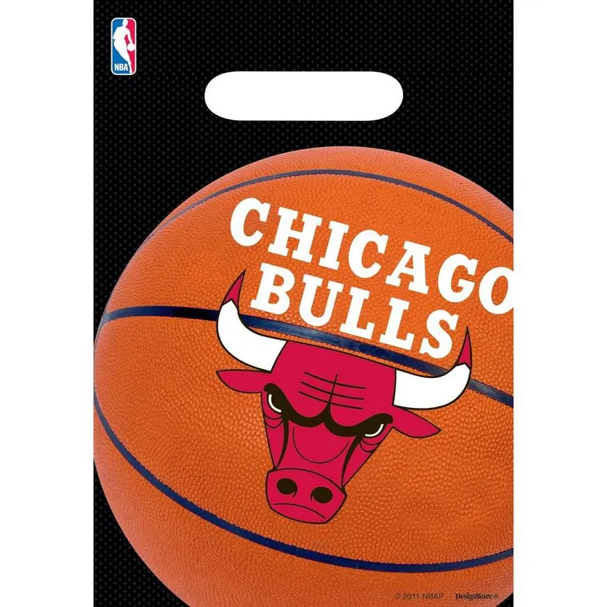 Send off your partygoers with goodies in hand! These Chicago Bulls Favor Bags feature a basketball with the Bulls logo against a black background. These officially licensed NBA bags also have a handle, so your guests can easily carry home treats from your basketball-themed party.