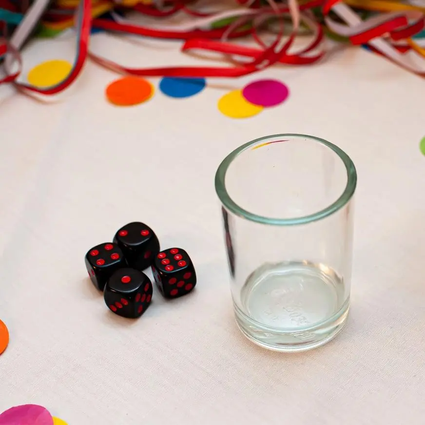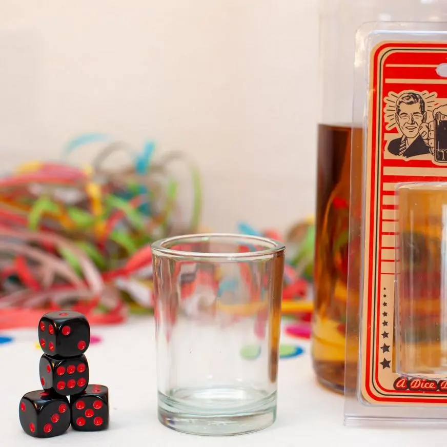 Get the party crackin’ with Drink Up Dice! Roll the dice to see which (un?)lucky person gets to drink. Each game set includes four dice and a plastic shot glass.