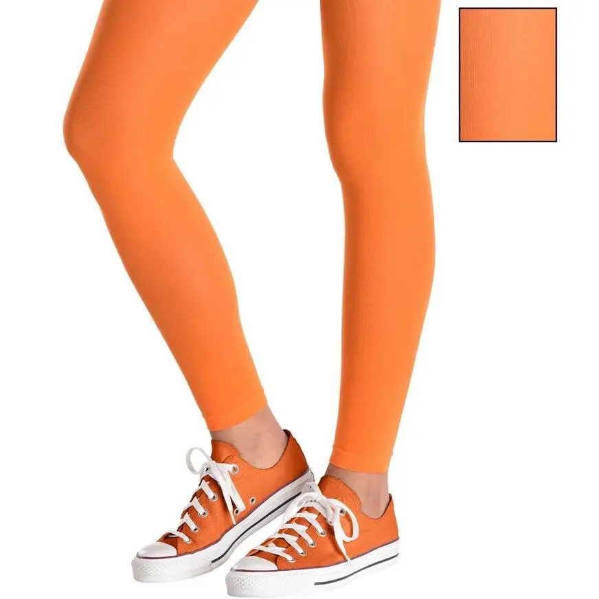 Add a little pep to your step with our Orange Footless Tights! These long orange leggings feature solid-color, opaque coverage. Wear them for a fun addition to your Halloween costume or spirited team gear!