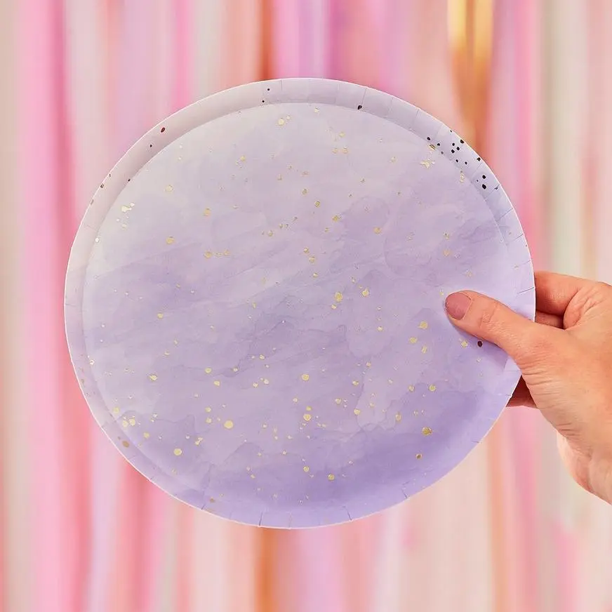 Add some sparkle to the celebration with pink and metallic rose gold plates. Made of paper, these plates are highlighted with shimmering rose gold speckles over faint pink gradient background. The plates are perfect for any occasion from birthday parties to holiday gatherings.