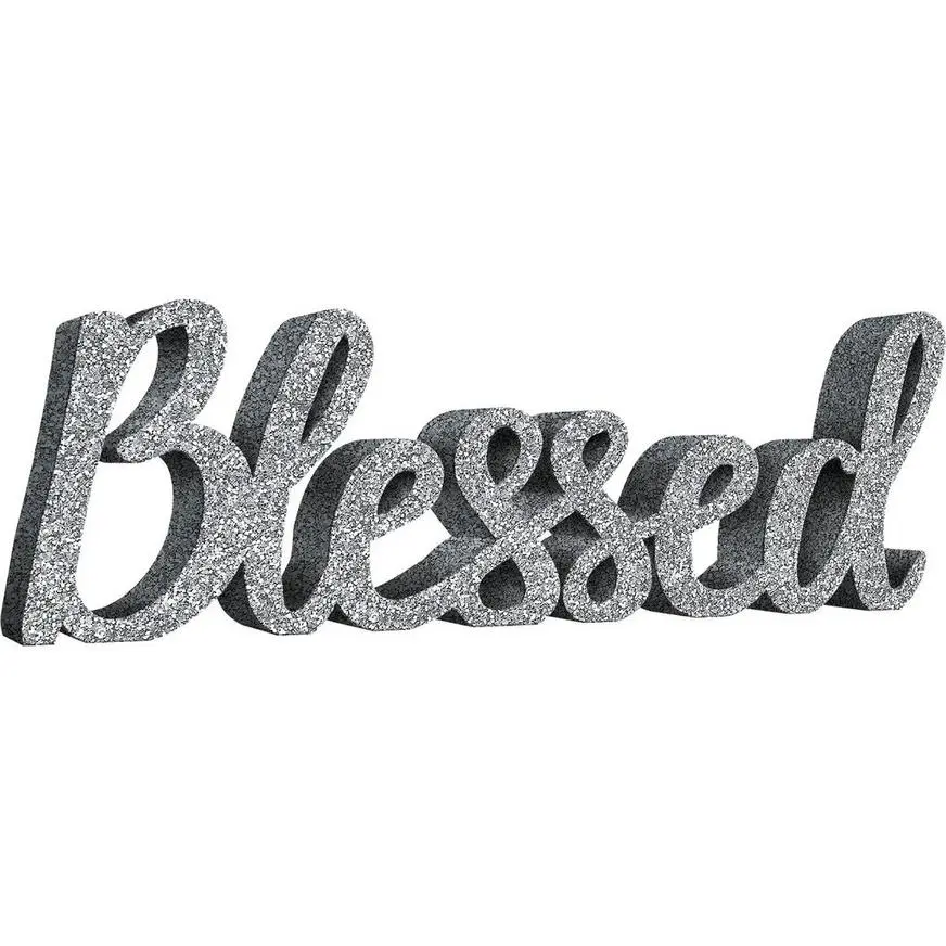 Glitter Silver Blessed Block Letter Sign product details: