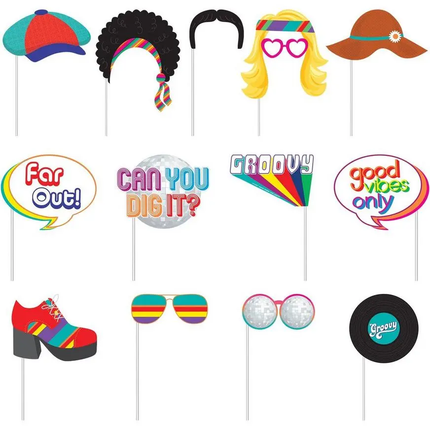 Good Vibes 70s Scene Setter with Photo Booth Props includes: