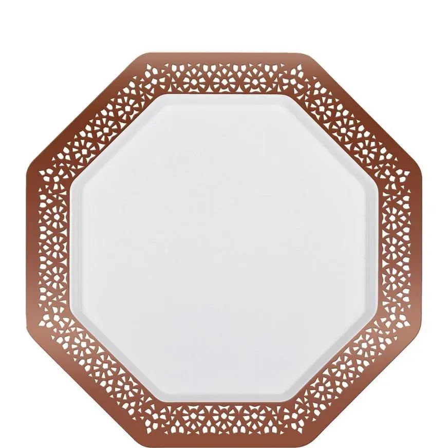 Rose Gold Lace Border Octagonal Premium Plastic Dessert Plates product details: