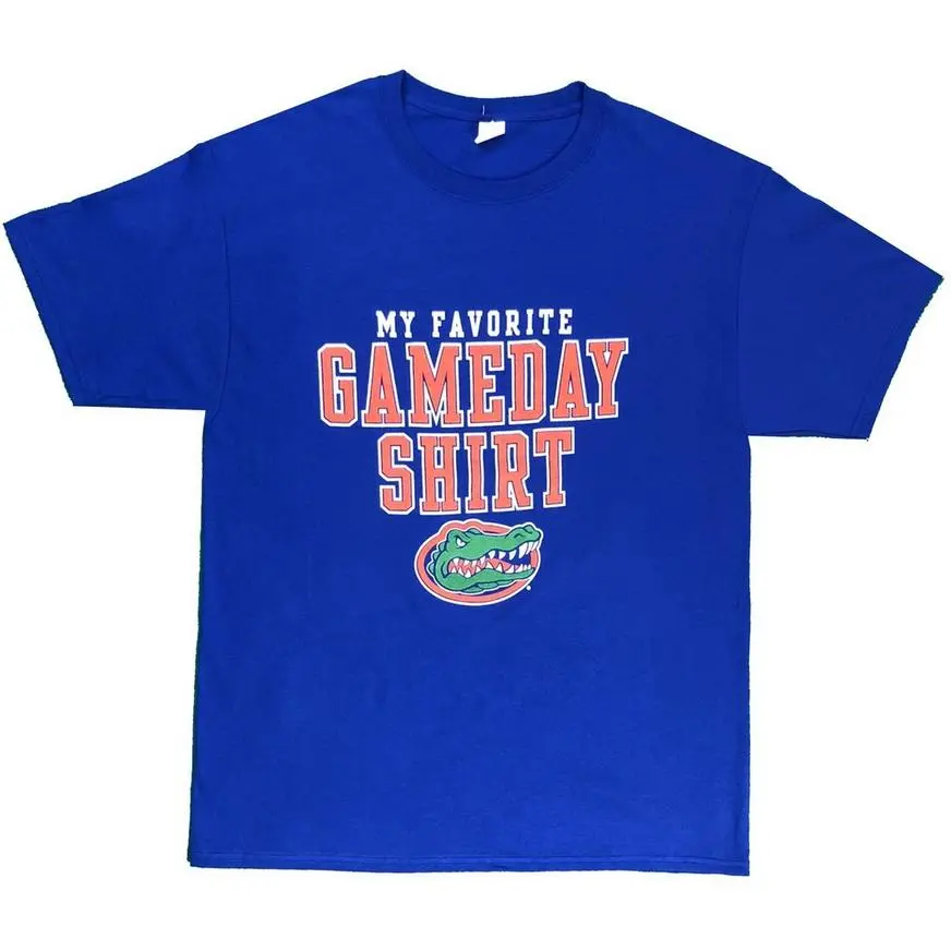 Support your school on game day by wearing a Florida Gators T-Shirt! This t-shirt features the school colors, the school logo, and a “My Favorite Gameday Shirt” headline. You can pair this shirt with other Florida Gators apparel and accessories to complete your game day outfit. Bring school spirit wherever you go while wearing this t-shirt! Review size chart for additional sizing information.