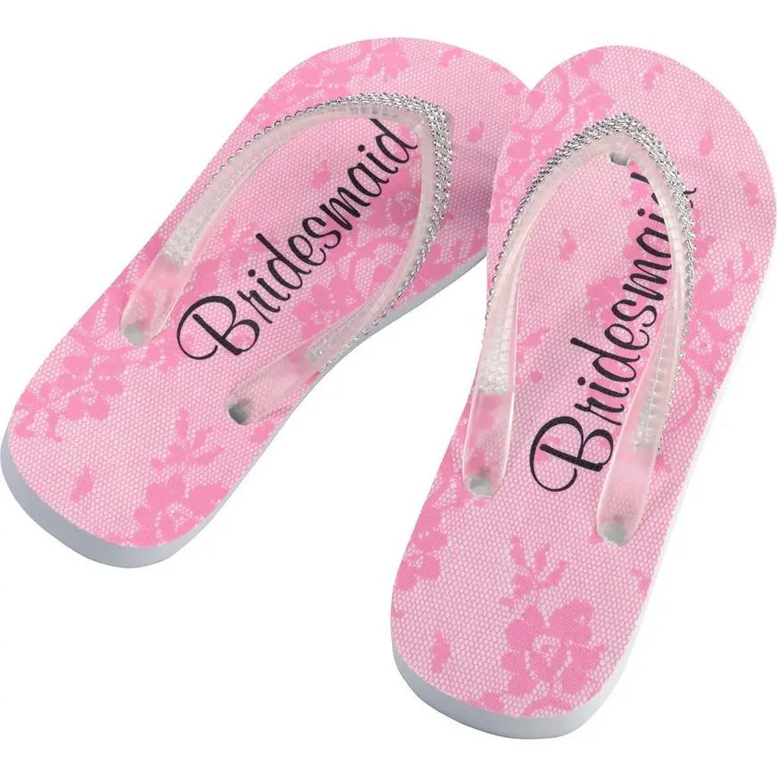 Adult Small Pink Bridesmaid Flip Flops product details: