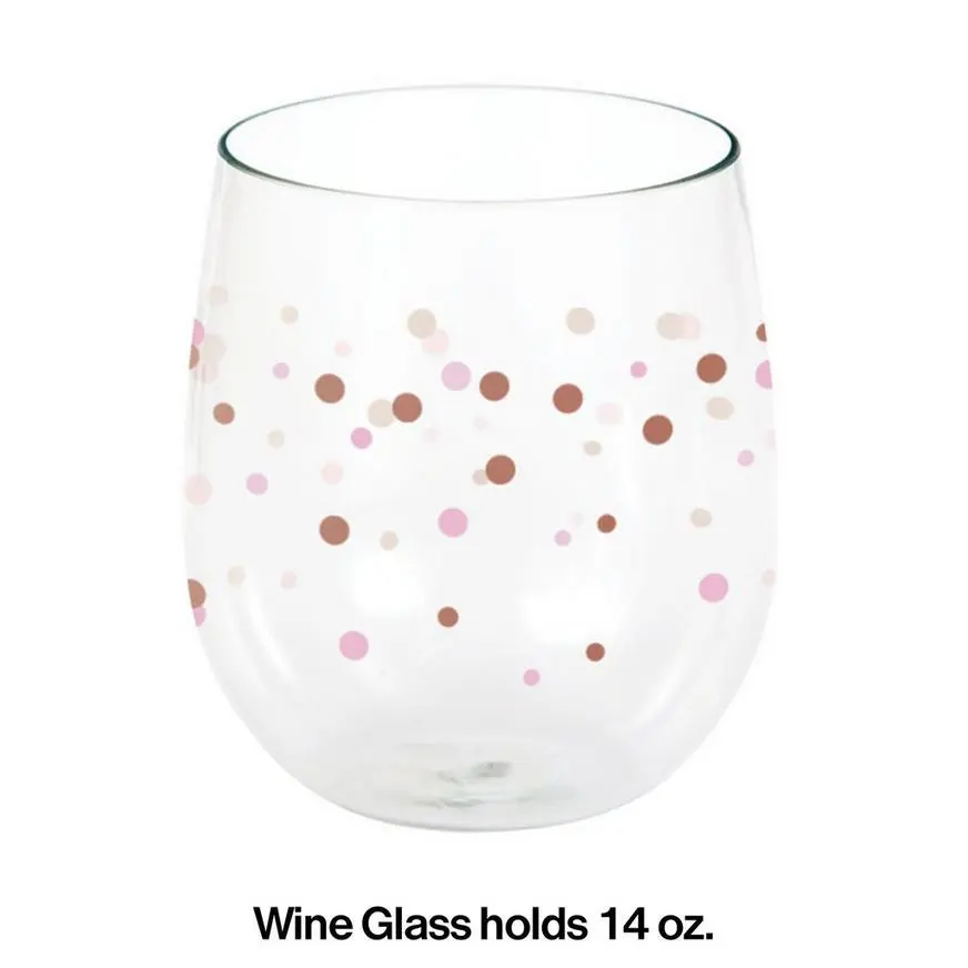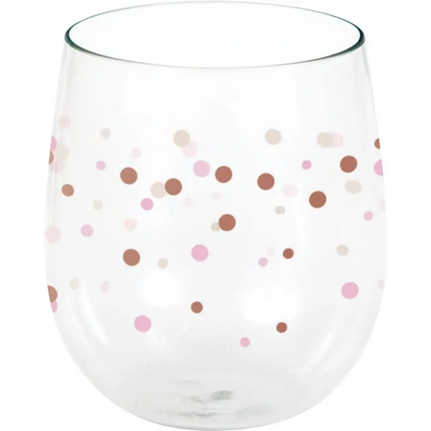 Metallic Rose Gold Dots Plastic Stemless Wine Glass product details: