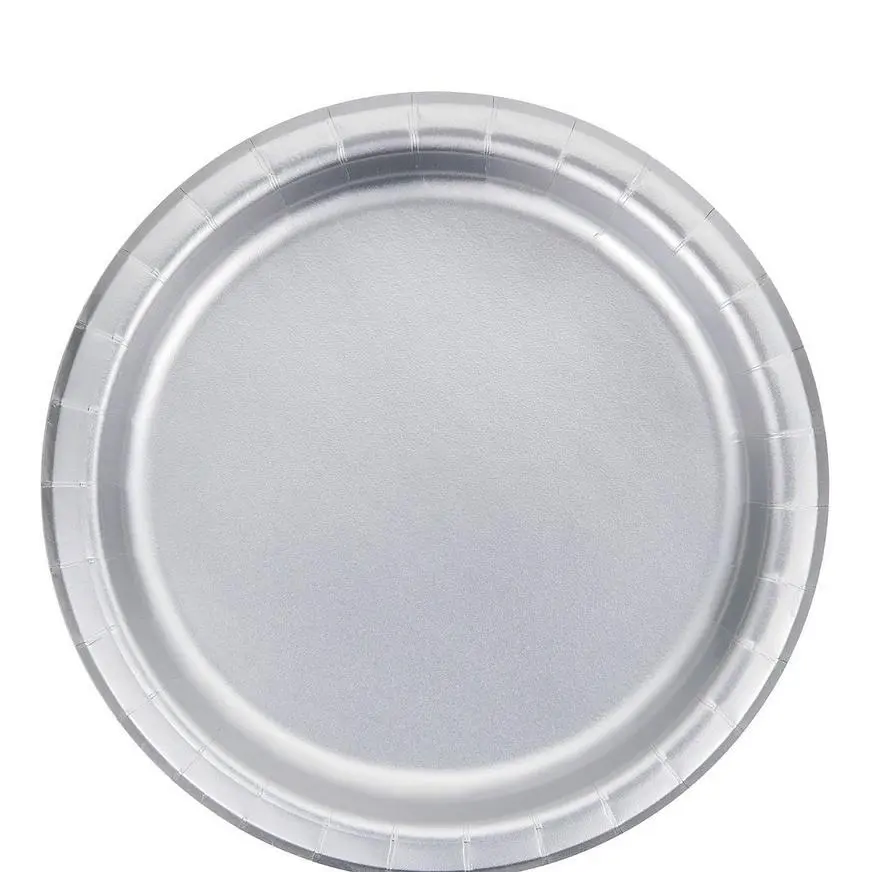 Add an eye-catching touch to your place settings or buffet table with Metallic Silver Lunch Plates! These paper plates have a deeper rim than standard plates and are solid silver with a metallic finish. They’re perfect for lunch, dinner, or heavy appetizers at your cocktail party, holiday party, or special event.