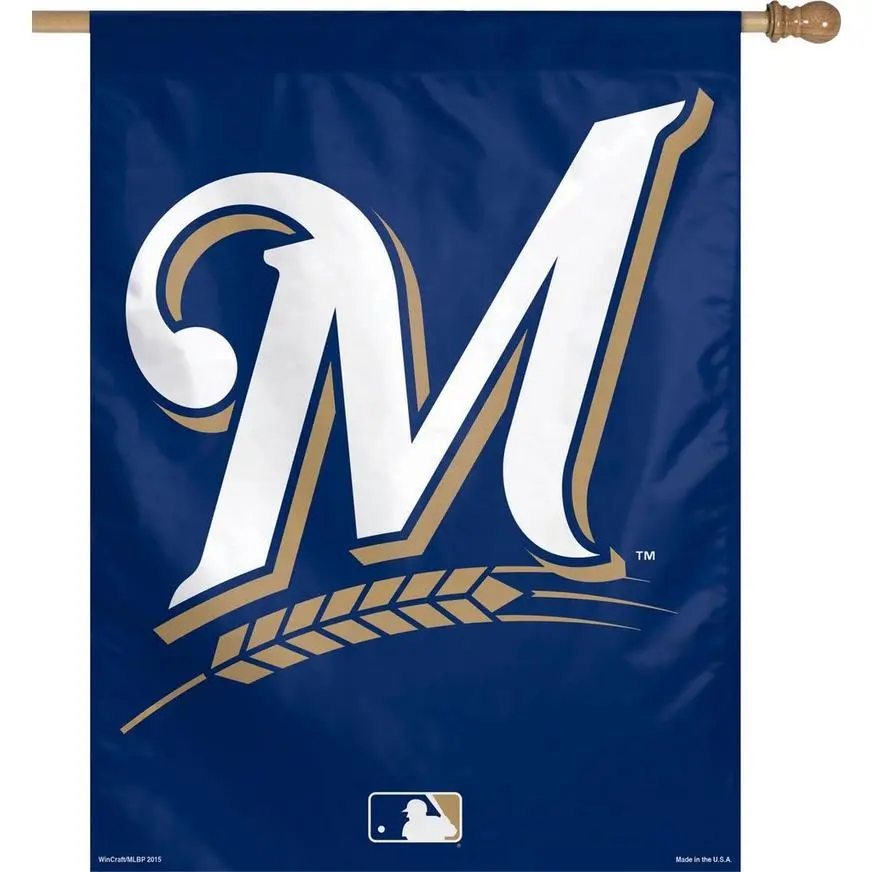 Show your team spirit with a Milwaukee Brewers Banner Flag. The flag features the official Brewers and MLB logos, along with the team name. It also features a sleeve on top, so you can easily hang it in your home during baseball season.