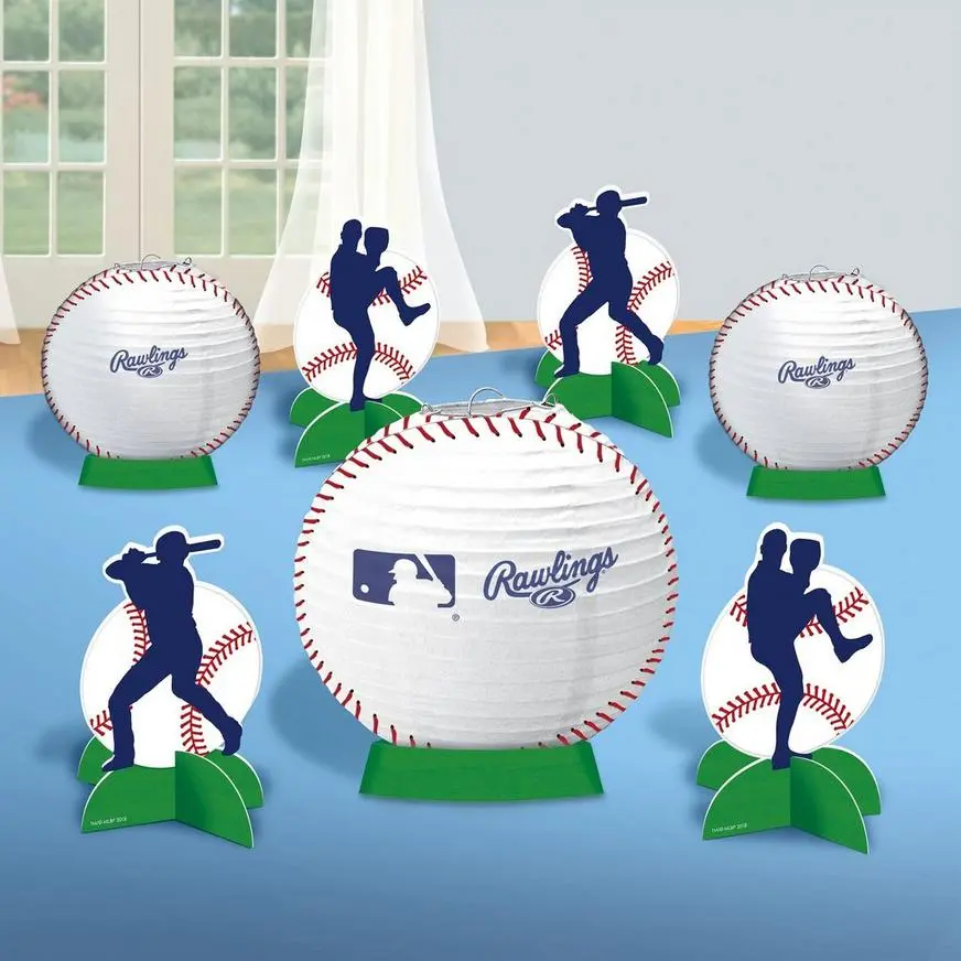Get your team in the mood to celebrate with the MLB Baseball Centerpiece Kit! First, assemble the three 3D MLB baseball centerpieces, which feature the official logos and classic red stitching. Next, assemble the four small silhouette centerpieces, showing players in action on the field. Everyone’s in the mood for the big game with these cardstock table decorations.