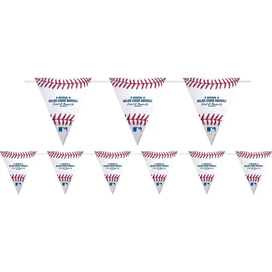 This officially licensed MLB Baseball Pennant Banner knocks it out of the park! Made of lightweight plastic, this banner features pennant flags printed with the official Major League Baseball insignia, red laces, and a leather-like look. It’s perfect for a tailgate or sports-themed party! Just hang it by the attached strings.