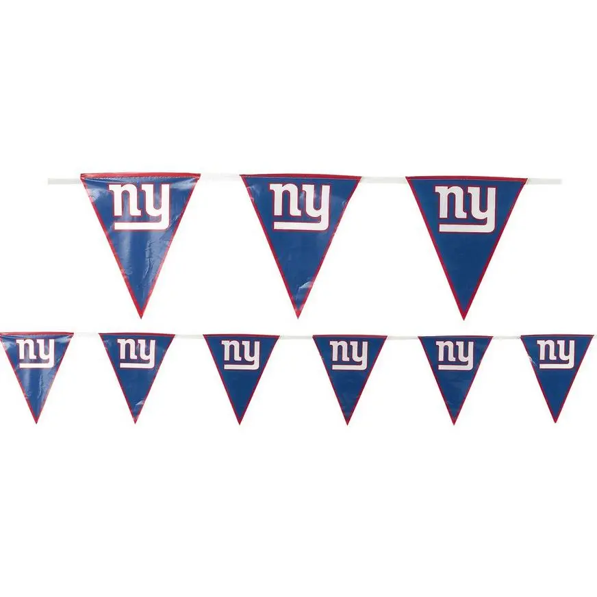 Get your party ready for some football! This New York Giants Pennant Banner features the logo and colors of your favorite football team printed on one side of each flag. With strings on each side for easy hanging, this officially licensed decoration is perfect for game day or a sports-themed party.