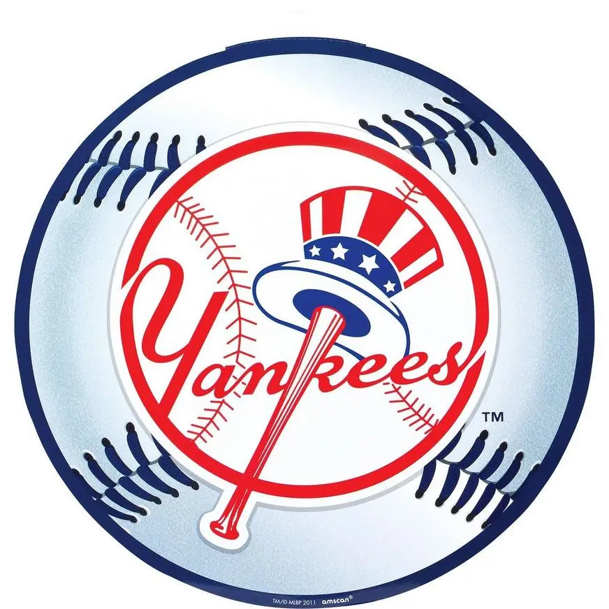 Show your team spirit! This New York Yankees Cutout features the official team logo and colors on a die-cut cardstock baseball with a detachable hanging clip. This one-sided, lightweight decoration can be attached to a wall or window with double-sided tape or Sticky Tack (sold separately) or hung from the ceiling. Perfect for showing your love for the Yankees on game day or at baseball-themed parties!
