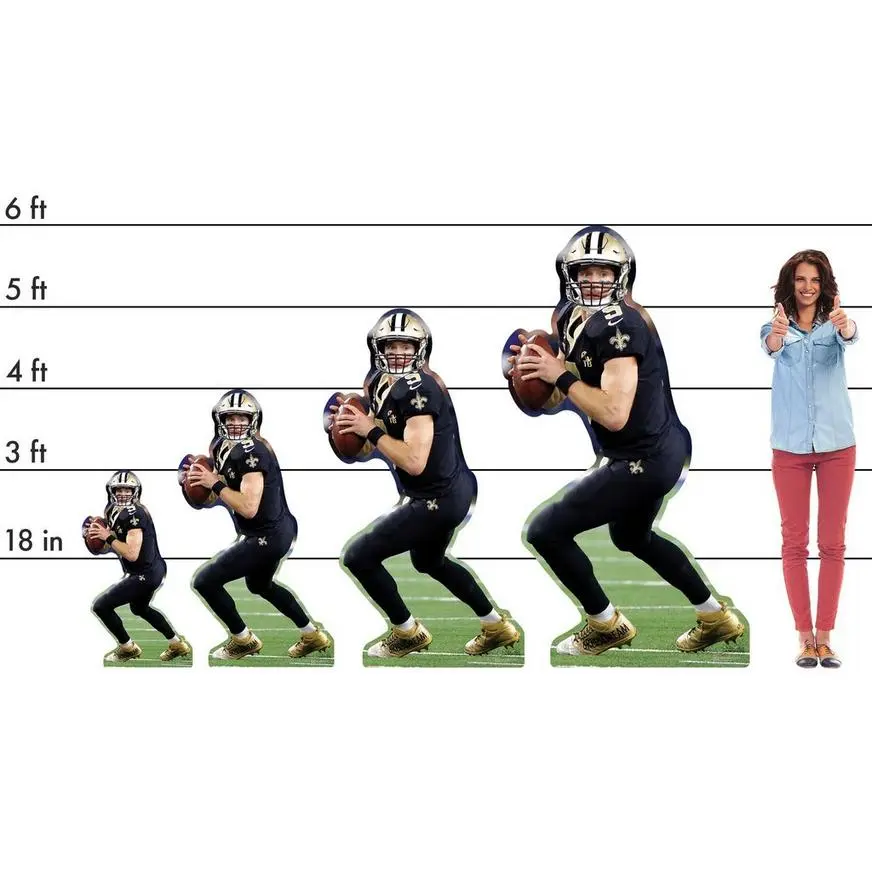 Create a picture-perfect scene by decorating with a New Orleans Saints cardboard cutout. It comes in four sizes and features an action shot of Drew Brees and an easel back for support. Set up a cardboard cutout to accessorize your venue or place it in the photo booth at your game day party. Then guests can strike a few poses and capture pictures to remember the big event for years to come. NFL New Orleans Saints Drew Brees Cardboard Cutout product details: 3ft tall Attached easel stand Assembly required Design on one side only