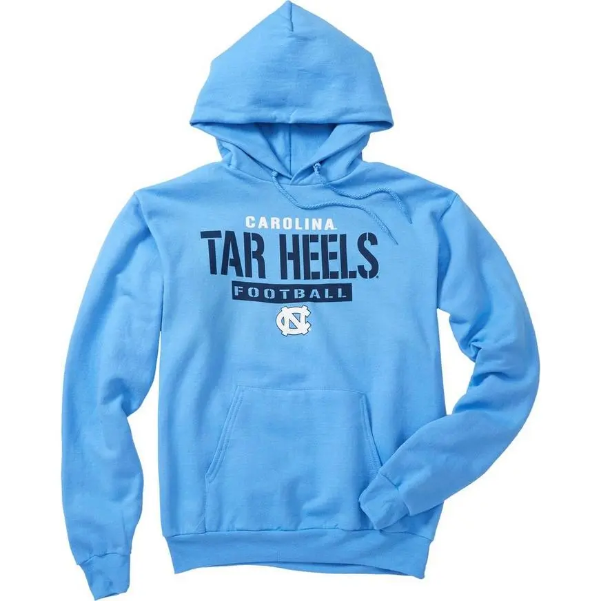 Root for your alma mater on game day in a North Carolina Tar Heels Hoodie! The North Carolina cotton hoodie features the school colors, the school logo, and a “Carolina Tar Heels Football” headline. Wear it with matching apparel and accessories to complete your game day outfit. Show off your school spirit while wearing this sports hoodie! Review the size chart for additional sizing information.