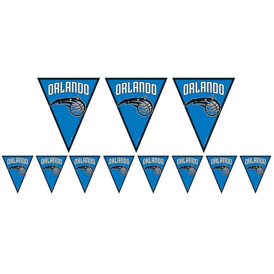 Decorate for the big game with an Orlando Magic Pennant Banner, featuring the official team logo on pennants strung together with heavy-duty thread. This one-sided, lightweight decoration can be hung from the ceiling or attached to a window or wall with tape or Sticky Tack (sold separately).