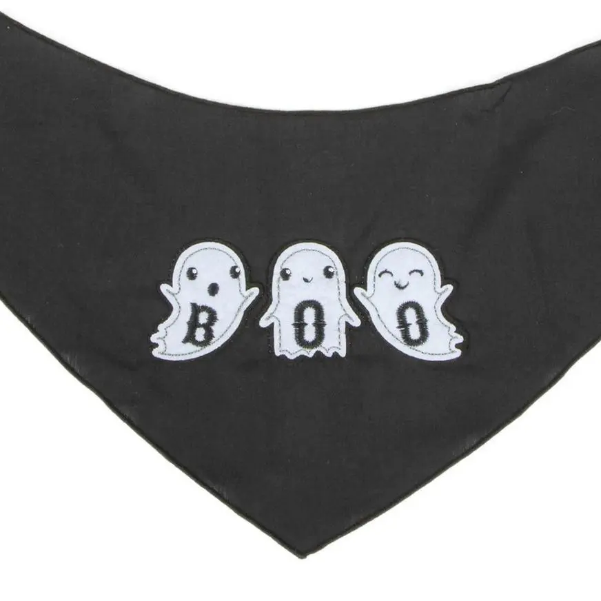 In case you thought your pup couldn’t get any more adorable, here’s the proof! Tie this soft black bandana around their neck, which is decorated with three little white ghosts that spell out “Boo.”