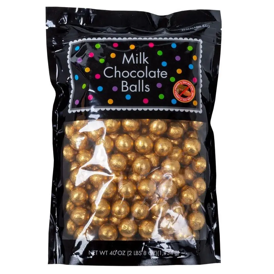 Fill up candy buffet bowls with Gold Chocolate Balls to create a colorful candy spread! These delicious milk chocolate balls feature gold foil wrappers. Perfect for holidays, birthdays, and other events, gold milk chocolate balls add a colorfully sweet touch to your candy display.