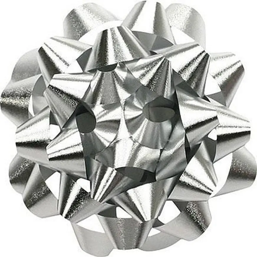 Our Prismatic Silver Gift Bow is an elegant finishing touch to any present! This classic gift bow features a traditional layered loop style with a shimmery, metallic finish. It’s a great way to dress up holiday and birthday presents! Self-adhesive Prismatic Silver Gift Bow measures 6in in diameter.