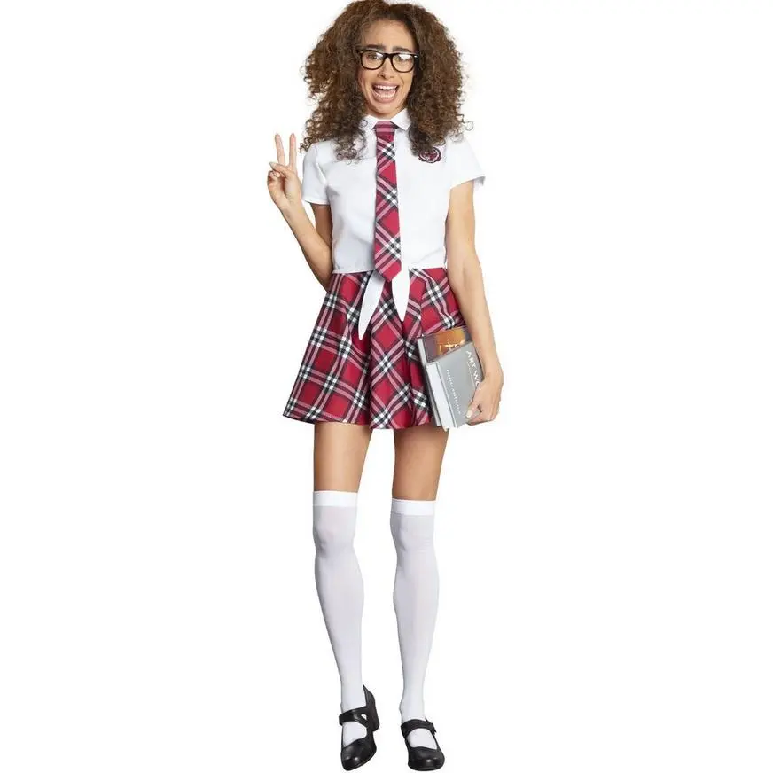 Get your preppy schoolgirl costume on point with a red plaid skirt! This poplin fabric skirt is red plaid with white and gray secondary colors. Made in the style of a prep school uniform, this skirt will give your costume extra pop.