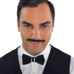 You’re looking dapper in a Roaring ’20s Bow Tie! This classy bow tie features a pre-tied layered style with a satiny black bow in front, a white bow behind and a matching black and white stripe ribbon center. It secures around the neck by an adjustable ribbon and a clip. Wear it with your 1920s costume or with formal attire for any event! One size Roaring ’20s Bow Tie measures 5in wide x 2 1/2in tall, and fits most teens and adults.
