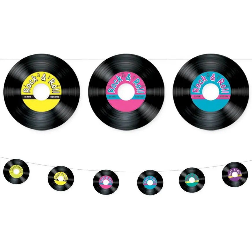 Set the scene to boogie and jive at your 50s-themed sock hop with a Rock ‘n’ Roll 50s Pennant Banner! String the cardstock record cutouts along the included string, and the banner is ready to go. Hang it from the ceiling or a wall or use it to decorate a photo booth backdrop!