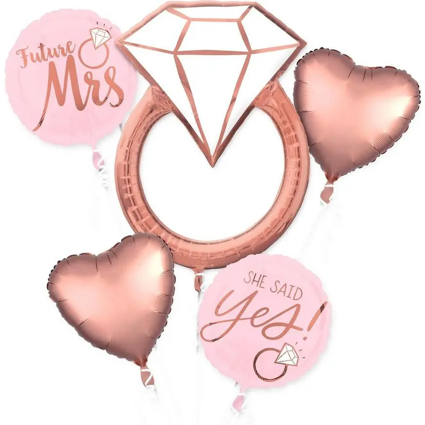Rose Gold Engagement Party Balloon Bouquet includes: