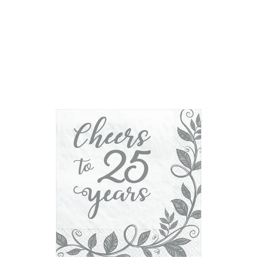 Silver Cheers to 25 Years Anniversary Beverage Napkins product details: