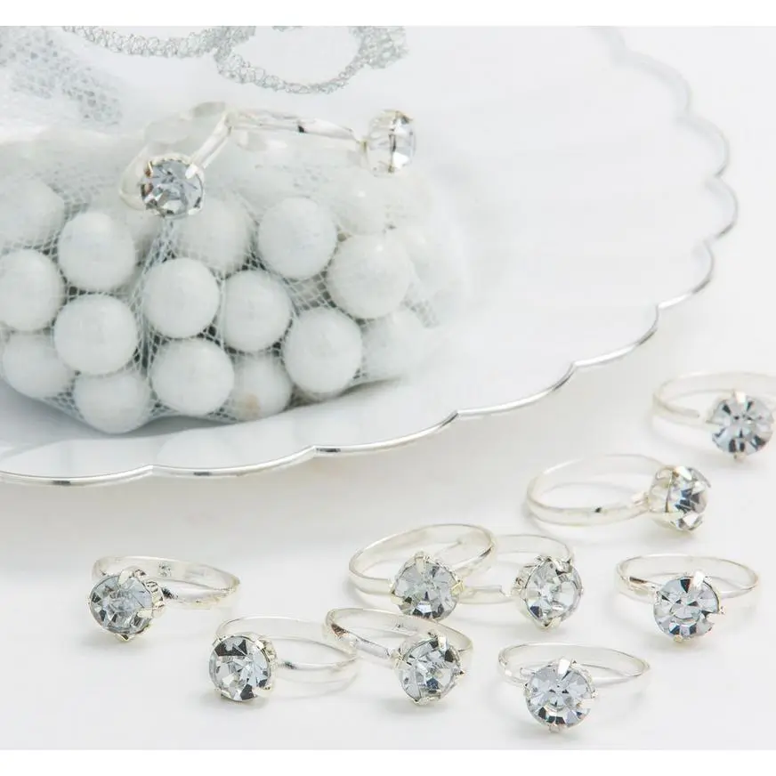 Unit price $0.33. Sold in sets of 12. Ring in love! You’ll find so many uses for our Silver Engagement Ring Favor Charms. Our ring charms feature a silver band with a faux diamond. Great to tie on wedding favor bags, use at place settings, use for table decorations and more!