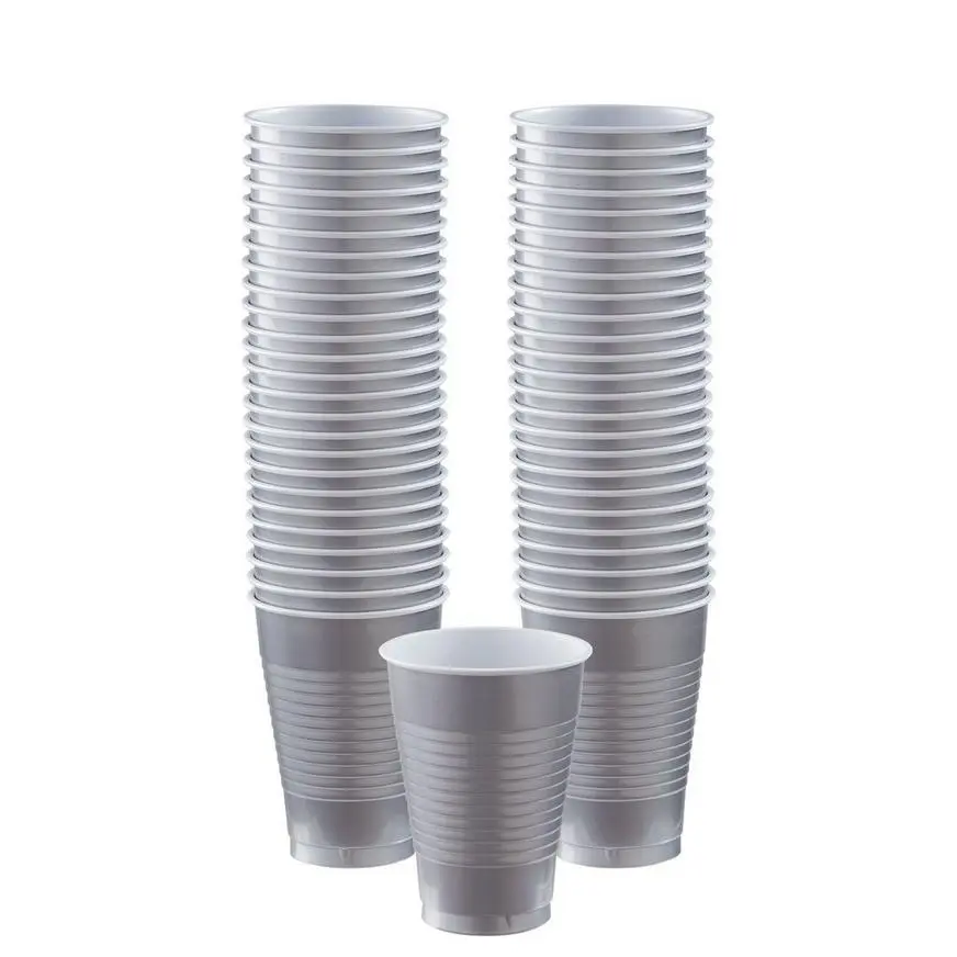 Brighten up a special occasion with Silver Plastic Cups! These silver 12oz plastic cups have a ribbed surface for a comfortable no-slip grip and a vibrant color to match your party theme.