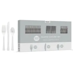 | 200 | Silver Heavy-Duty Plastic Cutlery Set for 50 Guests, (SKU 920147) |
