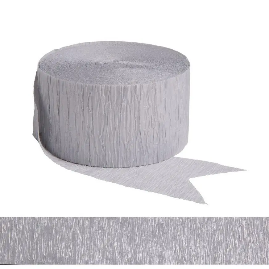 It’s fun, it’s classic, it’s Silver Streamer! Hang and twist this giant roll of crepe paper all over your party room, from wall to wall and ceiling to floor. For a custom design that accentuates your celebration or special event, mix and match this Silver Streamer with solid-color and printed decorations.