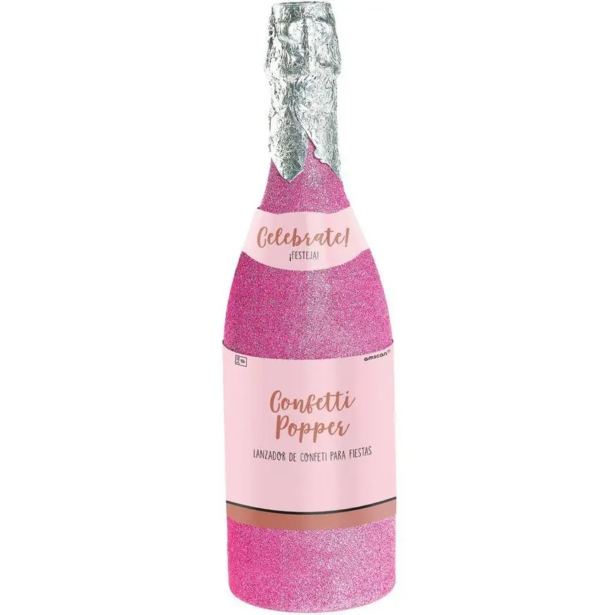 Shower the bride-to-be in glitter and sparkles with a Team Bride Bottle Confetti Popper! This fun confetti popper comes in a plastic bottle that is covered in pink glitter and says “Celebrate” on the neck. When you set it off (just twist the bottom), large pieces of pink and black tissue paper and foil confetti explodes with a pop! Party guests and onlookers up to 20 feet away will get a spray of confetti!