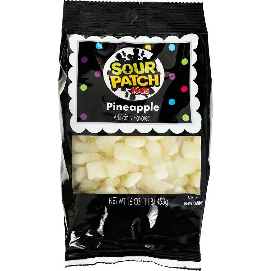It’s the sour-then-sweet candy kids and adults love! This bag of White Sour Patch Kids features the chewy and soft candies you love in delicious pineapple flavor. It’s the right size to share with family, friends, or anyone lucky enough to be nearby when you open it.